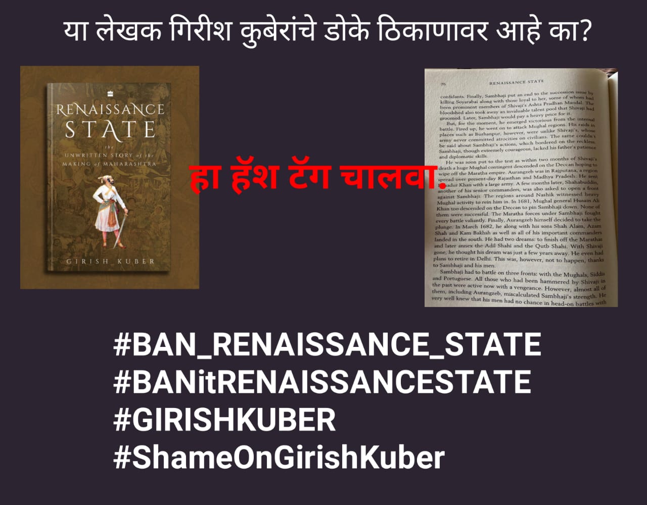 गिरीश कुबेरने संभाजी महाराजाबद्दल केले आक्षेपार्ह लिखाण , शिवप्रेमी आक्रमक, पुस्तकावर त्वरित बंदीची मागणी. RENAISSANCE STATE Book controversy :