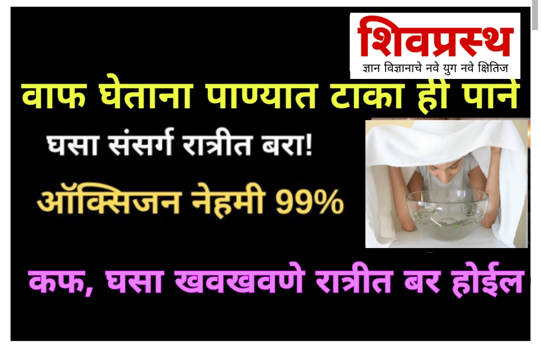 मित्रानो आजच्या लेखा मध्ये आपण पाण्याची वाफ घेण्याचे फायदे या बदल आपण जाणून घरणार आहोत. आज च्या या युगात खुप पदूषण तसेच साथीचे रोग सुरु आहेत; वातावरणात बरेच पदूषण असून लोकं वातारण बदल झालं कि कांहीना काही तरी आजार होत असतात. या पासून सावधान राहण्यसाठी खुप प्रयत्न कारतोत तरी सुद्धा आपल्याला काही तरी त्रास होतोच. मग आपण घरगुती उपाय करोत किंवा दवाखान्यात जाऊन औषध घेतो.