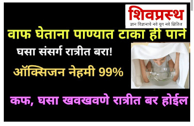 आपल्या आयुर्वेदिक शास्त्रा मध्ये बरेच उपाय दिले आहेत. ते केल्याने आपल्याला कमी प्रमाणत संसर्ग किंवा त्रास होतो. खुप सोपे उपाय असल्यामुळे ते सहज करता येते. त्यापासून कुठलेच दुष्परिणाम होत नाही. तत्यामुळे तुम्ही करून पाहू शकतात; झालेतर त्याचा फायदाच आहे. पाण्याची वाफ घेण्याचे फायदे तर खुप आहेत. गरम पाण्याची वाफ घेत जावी असे बरेच लोक सांगत असतात.